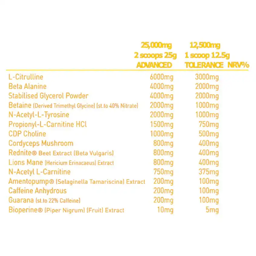 High-stim, advanced-user pre-workout formula